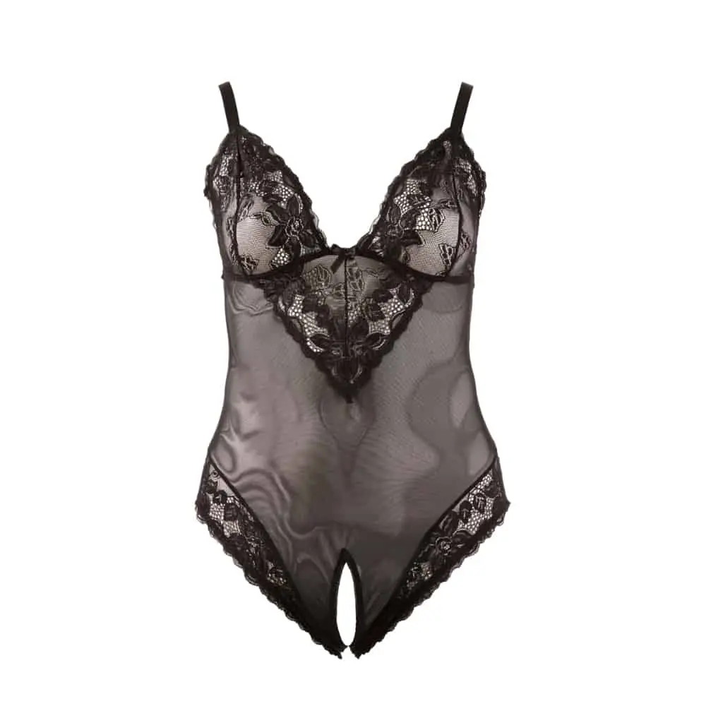 In deze sexy zwarte body komen jouw vrouwelijke vormen volledig tot hun recht. Het doorschijnende materiaal is elastisch waardoor het perfect aansluit op jouw lichaam. Daarnaast is deze body voorzien van kanten cups en kanten details die het geheel nog verleidelijker maken. Kan jouw partner zich niet langer beheersen? Ook dan kun je deze body gewoon aanhouden. Door het open kruis kan jouw partner gewoon ongestoord bij de fijnste plekjes komen zonder dat jij de body hoeft uit te trekken!