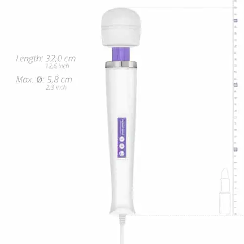 Maak kennis met de MyMagicWand. Een zeer krachtige vibrator met een vertrouwd design. Deze luxe wand vibrator is voorzien van een extra sterke motor met 6 verschillende vibratiestanden. Deze zijn eenvoudig te bedienen met de drukknop in het midden van het handvat. De MyMagicWand heeft een rond handvat waardoor de massagestaaf fijn in de hand ligt. Daarnaast liggen de drukknopjes binnen handbereik. Hierdoor kan er moeiteloos worden geschakeld tussen de verschillende vibraties. Kies voor aangenaam diepe vibraties of een pulserend patroon in een handomdraai. De MyMagicWand is voorzien van een extra lang snoer met een vaste stekker. Hierdoor levert de wand vibrator ongekend diepe vibraties. Daarnaast zijn er nooit problemen met een lege accu, lege batterijen of een afstandsbediening die niet optimaal werkt. Door simpelweg de stekker in het stopcontact te pluggen, is deze krachtige vibrator helemaal klaar voor actie. Tijd speelt hierbij geen rol. De MyMagicWand kan eindeloos doorgaan en hoeft niet te worden opgeladen. De top van deze wand vibrator is voorzien van een zachte hoes met padding. Hierdoor voelt de kop heerlijk aan op de huid. Voor optimaal comfort tijdens massages adviseren wij een massagegel of glijmiddel te gebruiken op waterbasis. Met slechts enkele druppels zal de kop van de vibrator moeiteloos over de huid glijden. Om de spieren sneller te laten ontspannen, kan er ook een verwarmend glijmiddel worden gebruikt. Massagegel en glijmiddel is eenvoudig mee te bestellen in onze drogist. Het reinigen van de MyMagicWand is een simpel en snel proces. De siliconen hoes over de kop van de vibrator is namelijk afneembaar. Door de hoes van de vibrator te halen, wordt het schoonmaakproces aanzienlijk eenvoudiger. Het hoesje is waterproof en kan gereinigd worden met een beetje water en toycleaner.