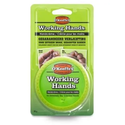 O’Keeffe’s Working Hands is een geconcentreerde handcrème die hele droge en gebarsten handen verlicht, hydrateert en helpt verzorgen. Het is klinisch bewezen dat O’Keeffe’s Working Hands bij dagelijks gebruik het vochtgehalte direct verbetert, verder vochtverlies helpt voorkomen en een beschermende laag op het huidoppervlak aanbrengt. Binnen enkele dagen is het verschil voelbaar.