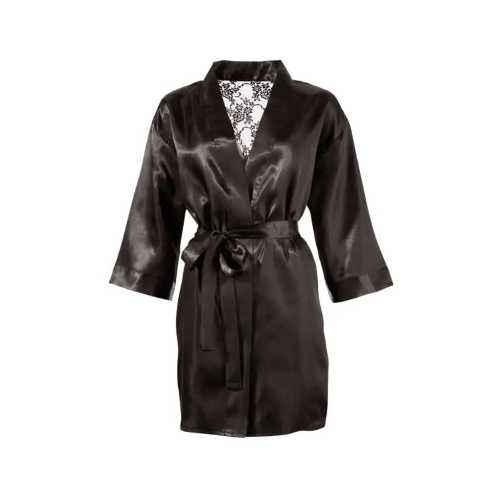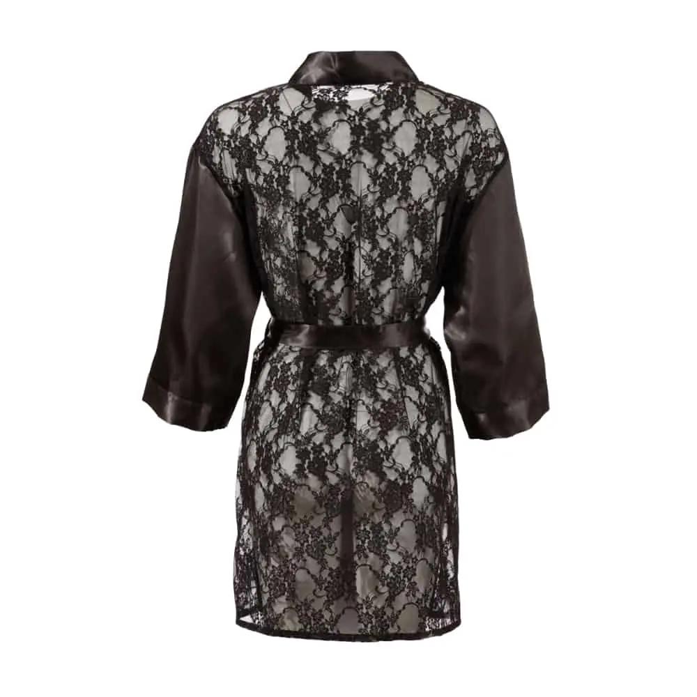 Voel je sexy en zelfverzekerd in deze prachtige glanzende kimono! De zachte, gladde stof voelt heerlijk aan op je huid en doordat de kimono losjes zit is hij zeer comfortabel om te dragen. Met het ceintuur kun je de kimono vastknopen rond je middel. De hele achterkant is gemaakt van zwart kant en is doorschijnend. Dit geeft een zeer verleidelijk effect en maakt deze kimono het perfecte kledingstuk voor een spannende avond in de slaapkamer!