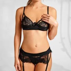 Heartina Kanten Jarretel Lingerie Setje – Zwart