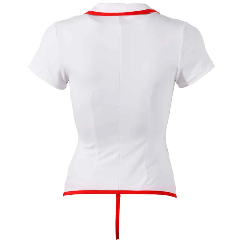 Sexy wit zuster pakje. Het shirt is gemaakt van rekbare stof en is zeer comfortabel om te dragen. Door de rekbare stof heb jij in dit kostuum voldoende bewegingsvrijheid voor al je dokter spelletjes. Het shirtje is voorzien van rode details en wordt geleverd inclusief bijpassende string.