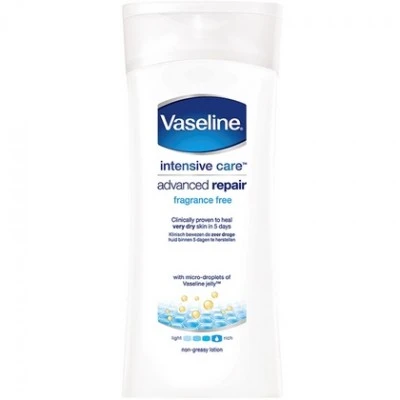 De Vaseline Bodylotion Advanced Repair herstelt en verzacht de droge en ruwe huid. Trekt snel in en is niet vet.